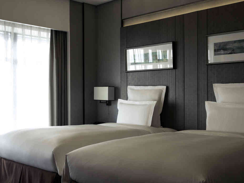 38 平方米,位于 17 至 22 楼,配备 2 张独具特色的带独立弹簧床垫的铂尔曼床、记忆枕、办公桌、独立淋浴和浴缸、无线网络、46 英寸 LED 电视、带 iPhone 扩展坞座的蓝牙扬声器、茶和咖啡器具。